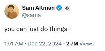 正如OpenAI首席执行官Sam Altman在去年12月发推文所说:「干就完了!」